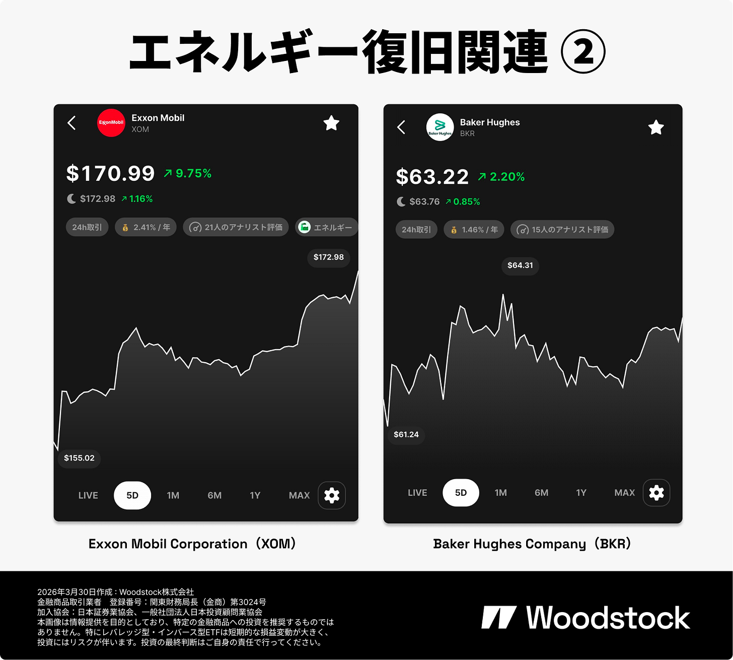 石油メジャーでは、エクソンモービル(XOM)が中東でオペレーションを展開しており、生産・輸出能力の回復局面で存在感を高めています。