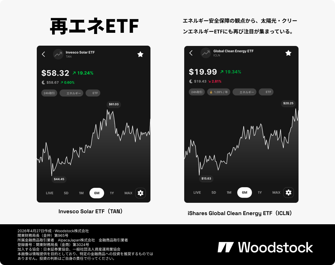 もちろん、関連ETFも金利や政策、過剰供給の影響を受けやすく、短期的には値動きが大きくなる可能性があります。それでも、エネルギー危機が起きるたびに再エネの重要性が再確認される構図は、今後も続くかもしれません。投資家としては、$TANや$ICLNのようなETFを通じて、どの範囲までリスクを取るのかを見極めたいテーマですね。